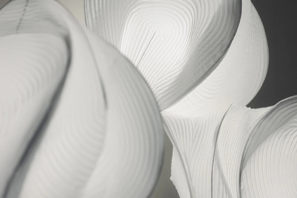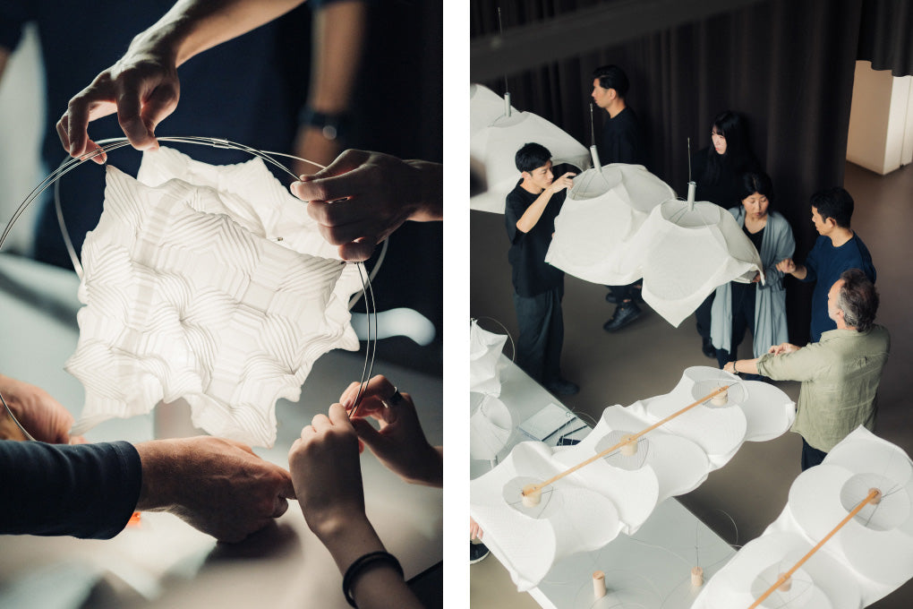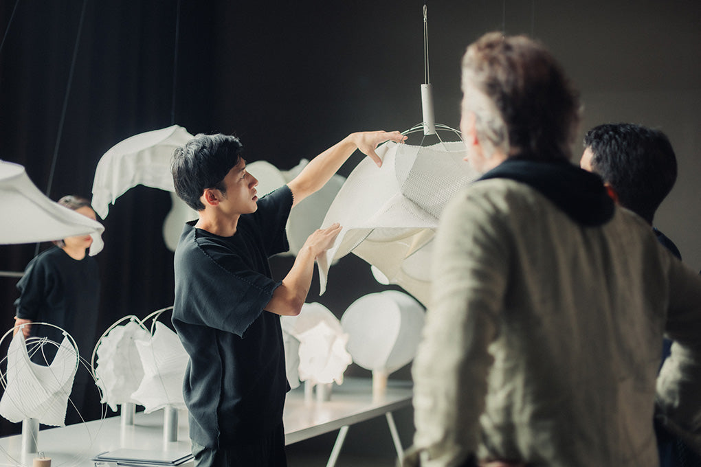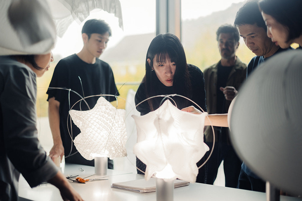 As a result, we ended up experimenting with the textiles in ways we had never tried before. Originally we developed these fabrics for clothing, but since this project was for lighting which was a completely different type of product, we had to enhance its durability and make several other modifications. Of course functionality as a textile was important, but we also had to make sure that it retained the expressive quality of a single piece of cloth, which is something we value deeply. Through our conversations, we managed to find the right balance for this project.