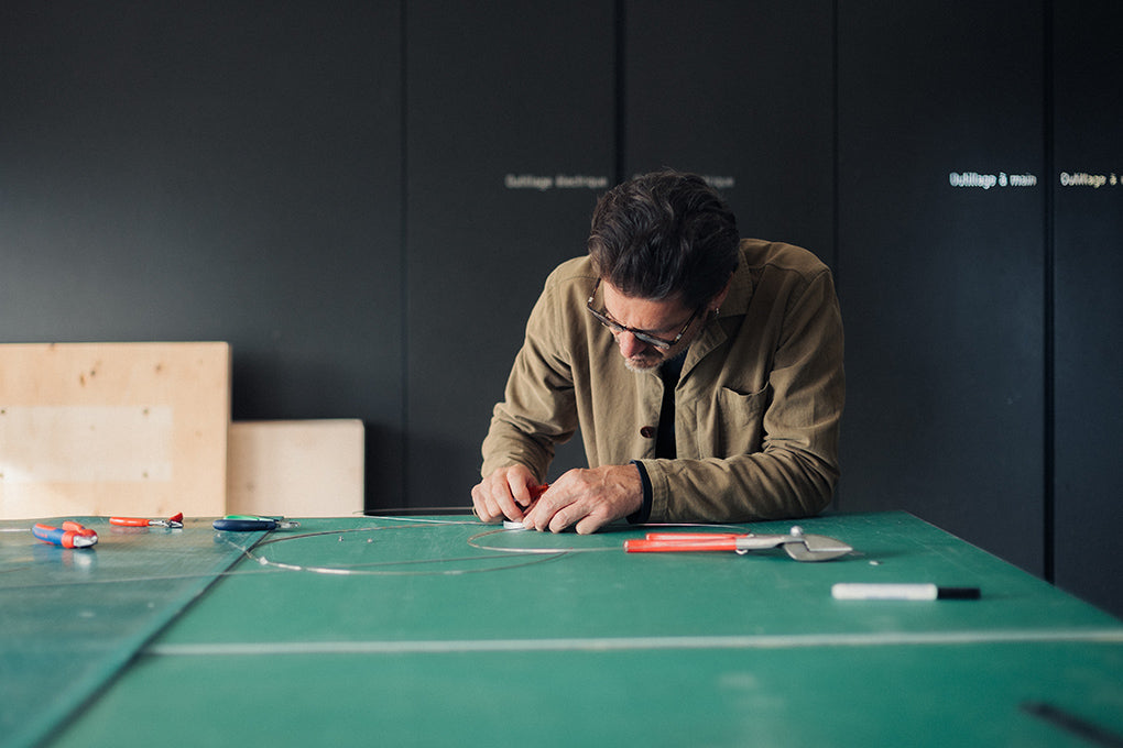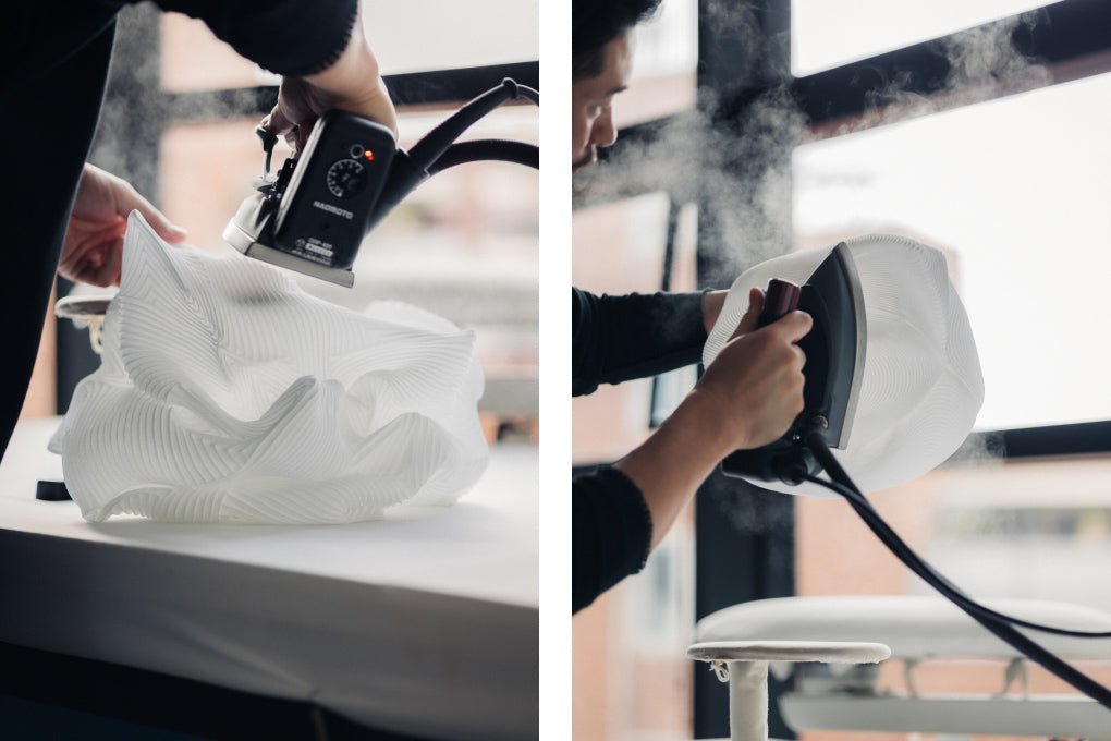 In brief, both series aim to maximize the potential of a single piece of cloth, not in the realm of clothing, but in lighting, which is a completely new domain. How could this experiment come to life in such a beautiful, functional and delightful form? Through a dialogue with Patrick Reymond, one of atelier oï’s founders, we explore this question.