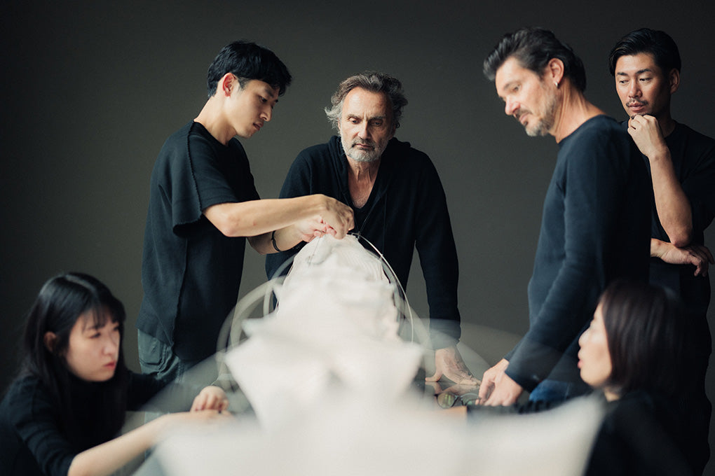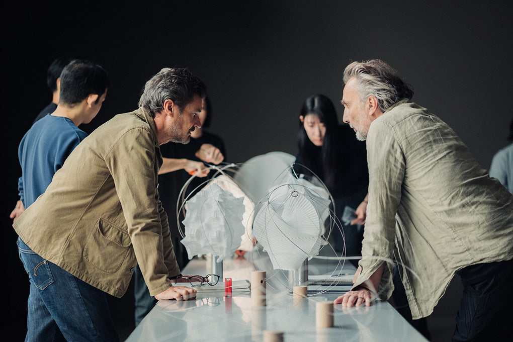 A piece of cloth, a single wire, one light source. Despite its primitive structure, the light is free and gentle. The “TYPE-XIII Atelier Oï project”, set to unveil at Milan Design Week 2025, is the result of a fruitful collaboration between A-POC ABLE ISSEY MIYAKE and the Swiss architectural and design studio, atelier oï. Both are deeply committed to exploring materials and value craftsmanship and teamwork. These shared perspectives became evident through conversations with Patrick Reymond, one of atelier oï’s founders.