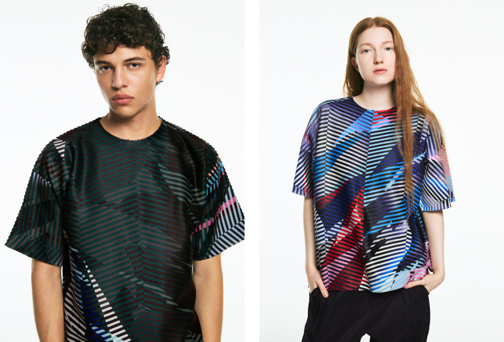 Dynamic graphics are printed onto A-POC’s signature seamless knit, forming a T-shirt series defined by bold, contemporary patterns that are emblematic of SOAR NY.