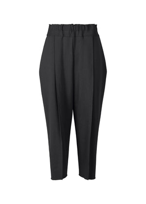 Ce pantalon noir court et fuselé présente un effet de couture à l'avant et à l'arrière. Il possède une taille entièrement élastiquée et des poches latérales.