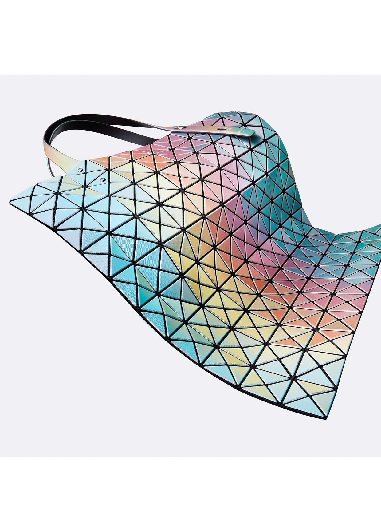 Launched with its first collection of the autumn winter 2010 season as an independent brand, BAO BAO ISSEY MIYAKE creates bags of innovative designs out of compositions of a variety of triangles. Not only are the bags—transforming from planes into geometric forms as they fill with items—designed for various occasions in life, but also they are products of utility that can be carried and stored flat. As the brand continues to explore the possibilities within the shapes and arrangement of geometric pieces, it engages in research and development of new materials along with new styles of bags, thereby challenging itself to look at what a bag is, while bringing a sense of beauty, wonder, and joy to the users.