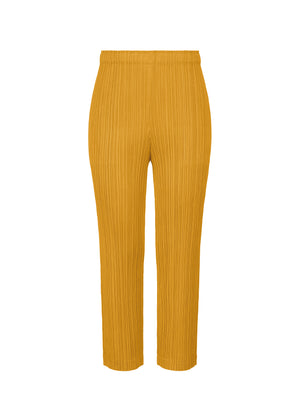 These ankle-length mustard pleated trousers have a slim fit, side pockets and an elasticated waistband.